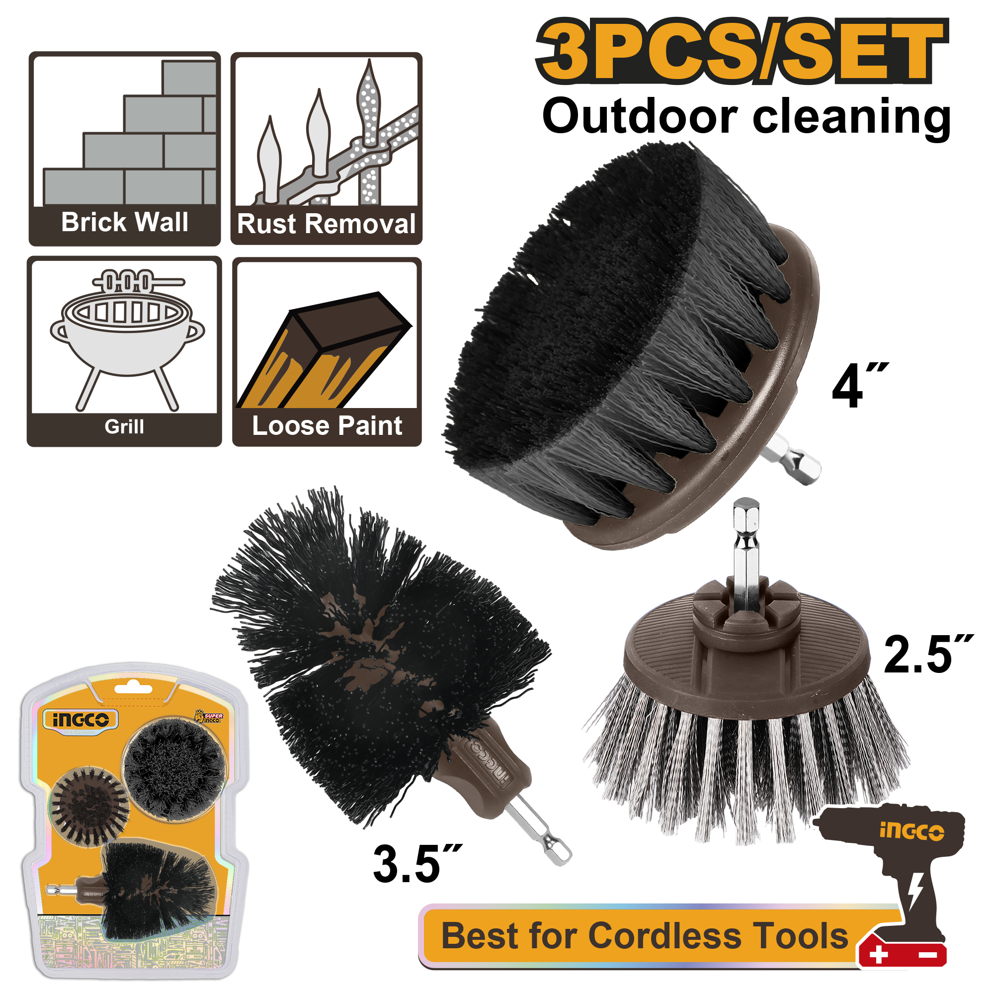 El Set de Cepillos de Limpieza ha sido construido pensando en trabajos que demandan fuerza y precisión. Desde proyectos de restauración y bricolaje hasta aplicaciones profesionales, estos cepillos se desempeñan excelentemente sobre superficies de ladrillo, metal y más.